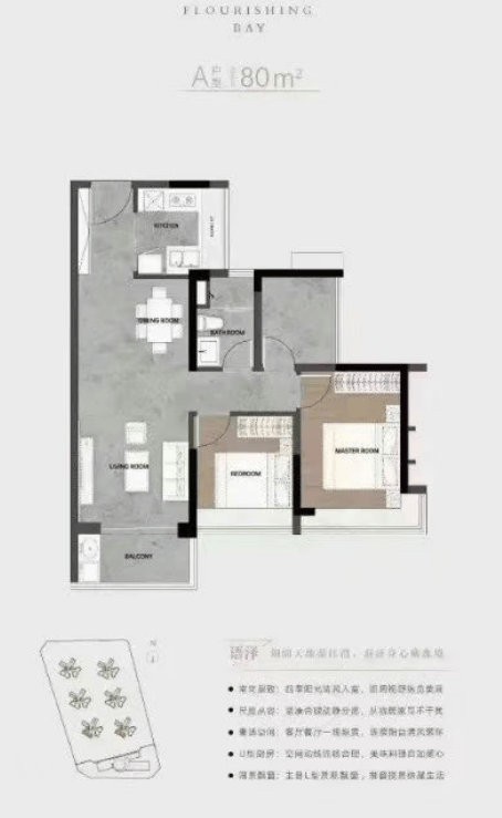 以“内外双环动线”滨水景观带为核心设计理念,海语天悦湾打造了一个集海湾风情花园、儿童乐园、中央泳池、社区会客厅于一体的全龄活力社区。楼栋采用蝶形布局,保证了南北通透,视线互不干扰,提升了居住的私密性和舒适度。