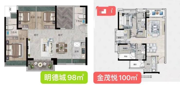 刚需户型方面,以 100㎡三房为例,设计紧凑高效。客厅面宽约 3.6 米,连接南向阳台,保证日常采光;主卧面积约 12㎡,配备独立飘窗,拓展使用空间;两个次卧面积分别约 8㎡和 7.5㎡,可满足儿童房或老人房需求。动静分区明确,厨房采用 U 型布局,操作动线合理,适配三口之家日常居住,且现房状态下,装修细节与空间尺度均可直观感受,购房更放心。