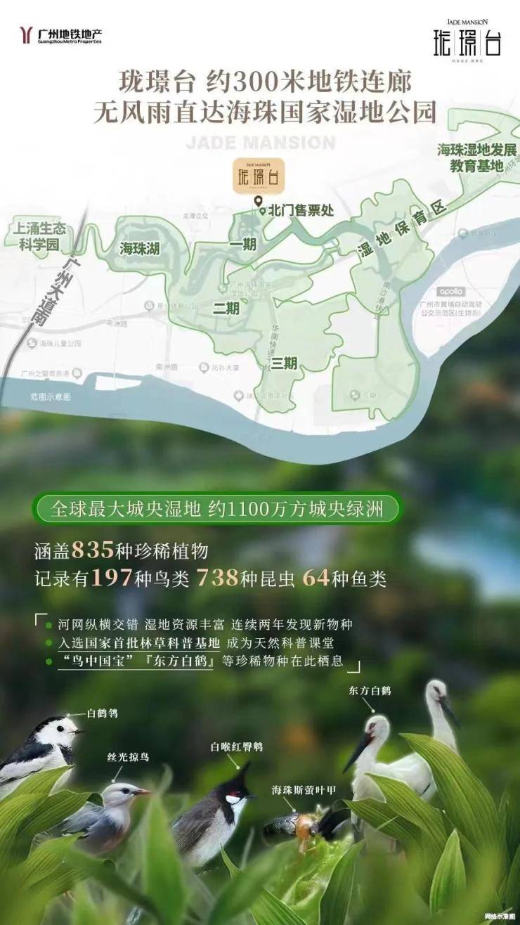 生态配套:项目紧邻海珠国家湿地公园,直线距离仅300米,步行10分钟即可入园,这个“广州绿肺”总面积达1100公顷,相当于3个纽约中央公园,推窗即享鲜氧与静谧,生态环境极为优越。此外,项目周边1.68公里处有赤沙公园,为业主提供更多休闲锻炼的场所。