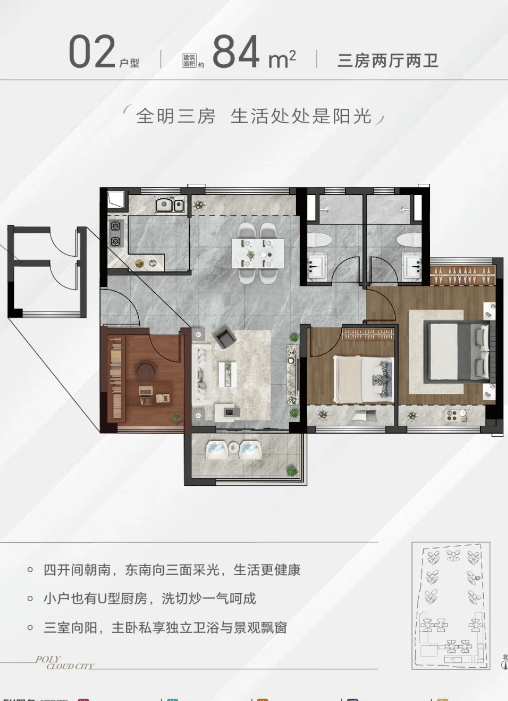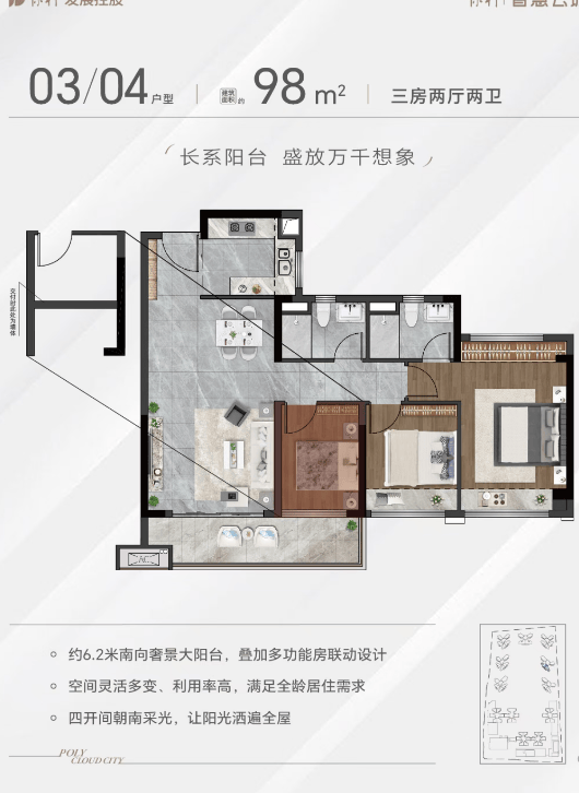 在户型设计上,保利智慧云城同样展现了深厚的功力。82平方米的两房户型,虽然面积不大,但通过巧妙的空间布局,实现了功能的全方位覆盖。客厅与餐厅的LDK一体化设计,让空间显得开阔明亮;主卧带独立卫生间,保障了主人的私密性;次卧虽小,但足以容纳孩子的学习和休息。而在115平方米的四房户型中,空间则更加宽敞舒适。南北通透的格局,保证了空气的对流和光线的充足;超大阳台的设计,提供了充足的晾晒空间和观景平台;多功能房的设置,可以根据家庭需求灵活转换为书房、影音室或客房。这些户型细节,无不体现出设计师对居住场景的深入洞察。