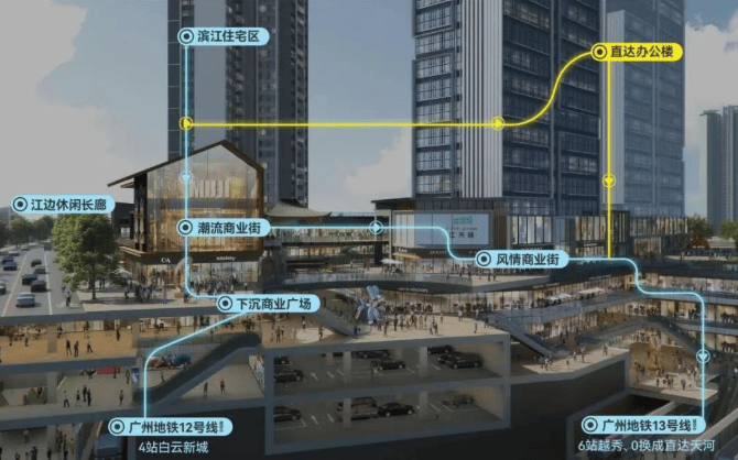 项目紧邻槎头站TOD,这是一个三地铁交汇换乘站,包括广州地铁12号线(在建)、13号线(在建)及佛山8号线(规划中),极大提高了出行的便捷性。特别是随着12号线和13号线二期预计于2025年下半年开通,届时从这里到白云新城只需15分钟。