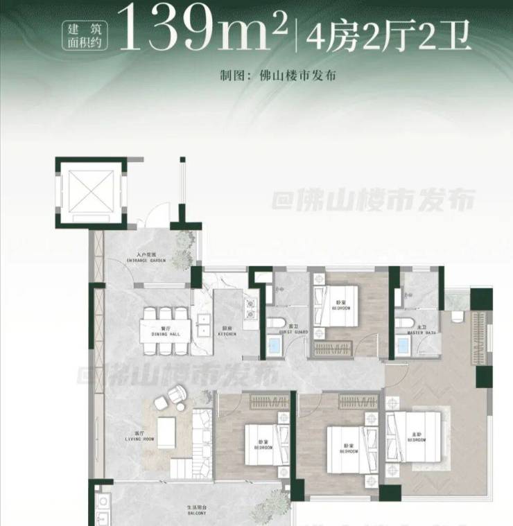 建面约 139㎡的户型,则是 “越级对流” 的典范。独梯专享的设计,让业主拥有独立入户空间,用改善户型的面积享受顶豪的归家礼仪。玄关旁还贴心预留了生活阳台,洗烘一体机、家政柜通通放下,完美实现 “美景与家务互不打扰”。最让人惊喜的是纯粹的南北对流格局,推开窗就能感受到映月湖的暖阳和园林的凉风,佛山人最爱的 “自然冷气” 随时在线。更绝的是约 16 米的连续南向采光面,客厅、主卧、双次卧一字排开,从清晨到黄昏,阳光洒满房间的每个角落。目前二期价格暂未公布,参考一期 A 区 143㎡户型 2.7-2.8w/㎡的价格,结合二期的地块优势和产品升级,相信会给市场带来惊喜。