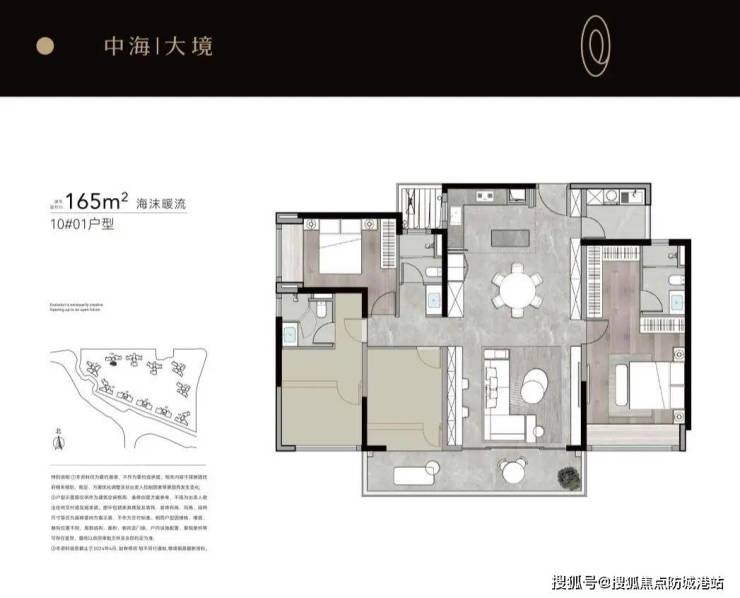 建面约180㎡四房两厅三卫:双套房设计,主卧270°转角飘窗。中西双厨配置,岛台预留智能家电位,层高3.1米,空间尺度媲美豪宅。