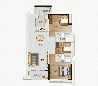 凤凰瑞景规划84-220㎡多元户型,涵盖两房至四房产品,可适配刚需、改善、终极置业等不同家庭结构与预算需求。项目得房率达80%,在同类型楼盘中表现优异,空间利用率较高,部分户型采用南北对流设计,通风采光俱佳,兼具实用性与居住舒适度。