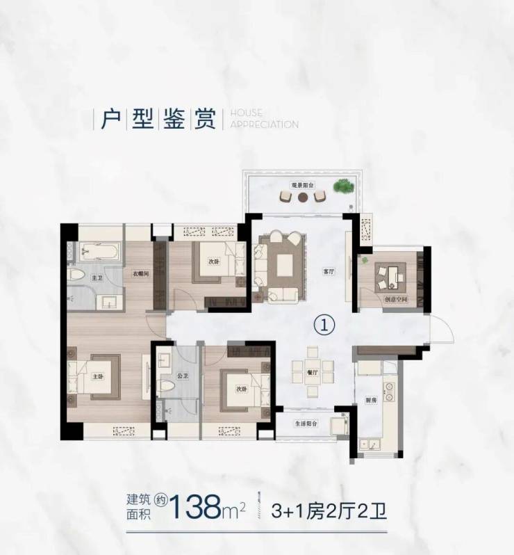 目前推出的A2组团新品,主打建面约108-138㎡的纯南向三四房户型,三梯四户设计,确保每户都能享受到充足的阳光和开阔的视野。其中,建面约108㎡三房户型设有双阳台,南向大主套设计;而建面约138㎡的3+1房则做到了五开间朝南,推窗即可见滨河、园林美景以及远处的珠江与大学城,北眺CBD繁华城市景观,南北对流的设计让室内空气更加清新。