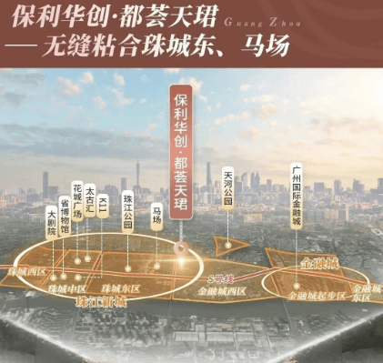 保利华创·都荟天珺位于华南快速和黄埔大道交汇处,距离珠江新城东区仅隔一条马路。西侧是珠江新城东区,东侧是金融城的核心区域,往南则与琶洲西区隔江相望。项目交通四通八达,开车10分钟即可抵达多个核心商业区。
