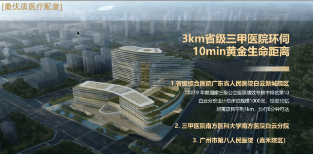 项目周边3公里范围内有广东省人民医院(白云新城院区)、南方医科大学南方医院、第八人民医院(嘉禾院区)等三甲医院,为居民健康保驾护航。