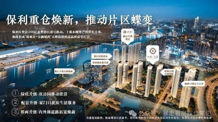 A4:项目所处的金融城西区(员村片区)改造是广州市、天河区“十四五”重点工程。根据2026年天河区政府工作报告,该片区城市更新已进入加速阶段。保利作为片区主要开发企业,正协同政府推进连片开发。随着花城大道东延线、临江大道沿线景观升级等市政工程的完工(2026-2027年),城市界面将得到显著提升。项目自身是高围墙封闭式管理社区,内部环境独立且纯粹。