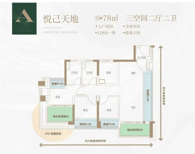 高效空间利用:例如,78㎡户型可带来堪比旧规100㎡户型的宽敞感,11米南向四开间面宽,使每个房间和客厅都能享受阳光和风景。