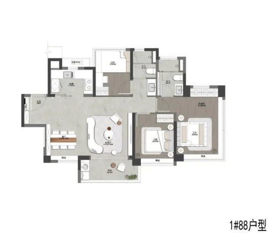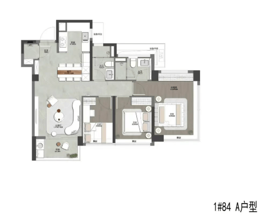 约84–88㎡三房两卫:紧凑实用,功能齐全,适合年轻家庭;