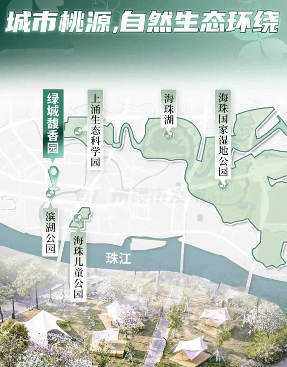 虽身处城市核心,绿城馥香园却巧妙营造出“大隐隐于市”的桃源意境。项目背靠河涌,精心打造滨河公园,并与海珠儿童公园、海珠湖、海珠国家湿地公园共同构成超大尺度生态背景板,推窗即见绿意,出门便是自然。