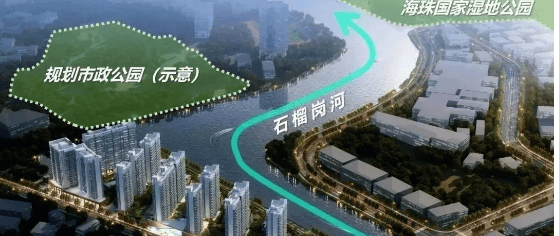 项目周边生态资源得天独厚,西侧紧邻广州海珠湿地公园(国家 4A 级景区,面积超 1100 公顷),南侧与石榴岗河相邻,推窗即可见湿地绿意与河景;3 公里范围内还有海珠湖公园、瀛洲生态园、广州国际生物岛,四大公园串联形成 “天然氧吧”,日常散步、晨练、亲子活动可随时亲近自然。作为琶洲 CBD 旁少有的低密生态社区,项目既享 CBD 发展红利,又拥稀缺自然景观,居住品质与生态体验兼具,堪称海珠宜居典范。