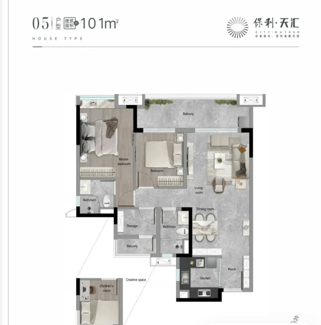 值得一提的是,保利天汇五期作为整个项目规模最大的楼王组团,更是以“纯居、高端、舒适”为核心定位,带来了全新的居住体验。该组团由16栋纯住宅组成,没有公寓和商业配套的干扰,居住属性更为纯粹,有效避免了商业嘈杂对居住环境的影响,让业主能够享受更静谧、舒适的居住氛围。同时,五期组团背靠奥体山林公园,拥有内外一线双园林景观,将自然景观与社区园林完美融合,成为整个项目中拥有最优自然资源的组团,居住舒适度拉满。内部配套更是全面升级,打造了四大主题模块的全年龄乐园,涵盖颐养主题、童享主题、健身场地、泛会所,以及中心泳池等,全方位满足不同年龄段业主的休闲、娱乐、健身需求,真正实现“全龄段宜居”。