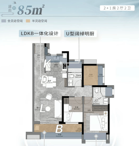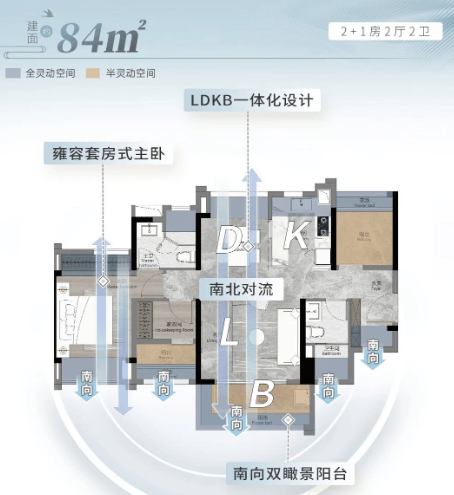 南向双瞰景阳台,U型明厨,主卧套房设计,南北对流设计,四季新鲜空气。