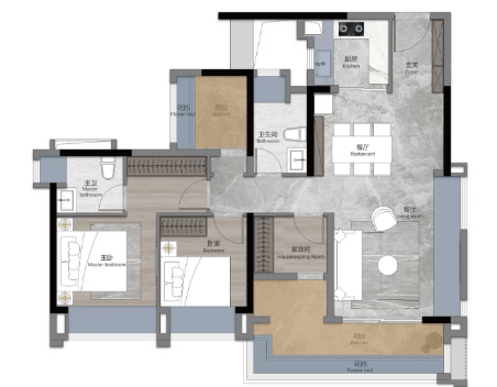 五开间朝南,超阔瞰景阳台,南北对流设计,奢阔私密主卧套房。