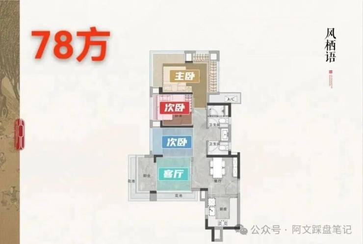 也有约110㎡的明星四房,客厅一面带飘窗,采光更佳,视野更开阔。