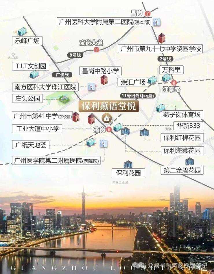 约50m燕岗站,广佛线、11号大环线(土建工程已完成98%,将于年内通车)双地铁上盖,4站达上涌、8站达琶洲,轻松链接全城。