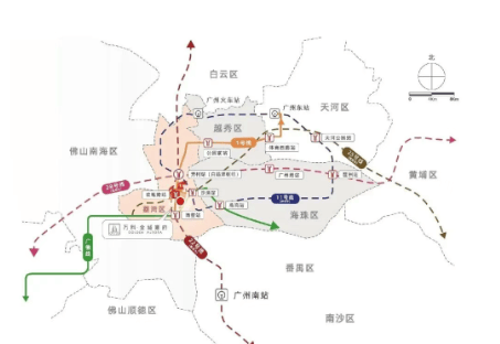 交通便利性:地处黄金地铁1号线花地湾站旁,一站即可到达白鹅潭交通枢纽,六站直达公园前站北京路商圈,便捷接驳多条地铁线路,通达广州各区。