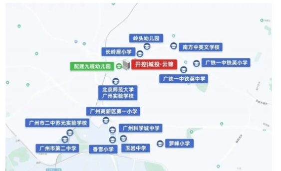 项目距离北师大实验学校约700米,步行仅需8分钟左右,该校是区域内的优质学府,涵盖幼儿园、小学、初中、高中多个学段,师资力量雄厚,教育教学质量优异。此外,距离项目较近的小学还有长岭居小学南校区和北师大广州实验学校小学部,这两所学校均对口长岭社区符合政策的适龄儿童,项目大概率会纳入招生范围。