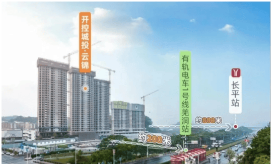 公共交通方面,项目距离地铁21号线长平站约800米,步行10分钟左右即可到达,乘坐地铁可快速通达天河、增城等区域;有轨电车1号线羌洞站就在小区门口,无缝接驳地铁21号线,3站可到达科学城核心区域,4站直达天河,极大地提升了公共交通的便捷性。