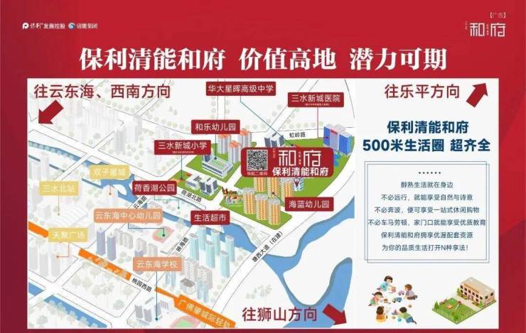 保利清能和府地处三水新城核心板块,周边环境优越,生态资源丰富,人文氛围浓厚,既有自然景观的静谧与优美,又有人文设施的丰富与便捷,打造“生态宜居、人文荟萃”的高品质居住环境,让业主在享受便捷生活的同时,也能亲近自然、感受人文魅力,提升居住的幸福感与舒适度。