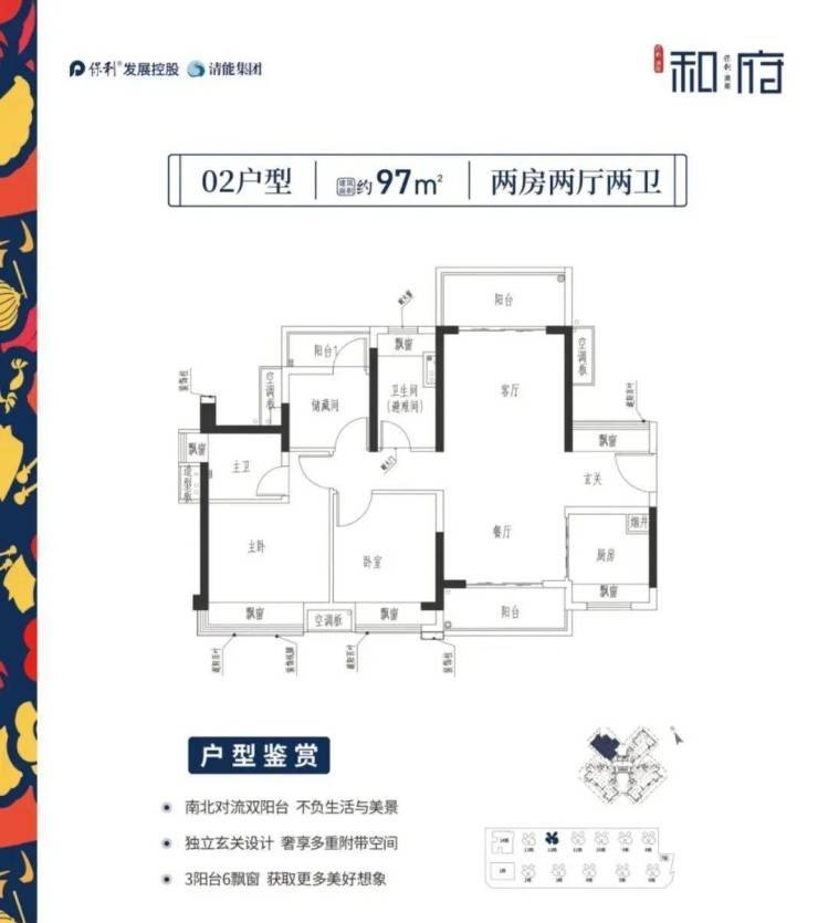 (三)约97㎡对流双阳台户型:南北通透·通风俱佳·全能舒适