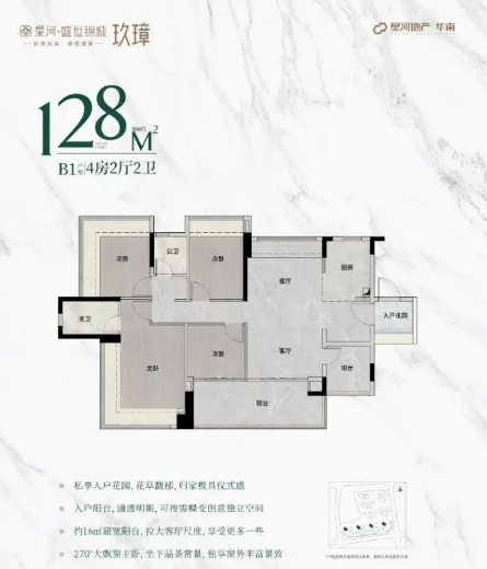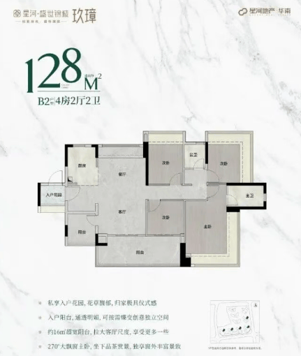 128㎡户型:相较于二期136㎡户型,优势尽显。独立入户花园设计,不仅增加了鞋柜的置物面积,更让归家的第一刻便感受到温馨与舒适。厨房、客餐厅和主卧尺度大幅提升,带来宽敞明亮的烹饪空间、舒适宜人的用餐和起居环境。