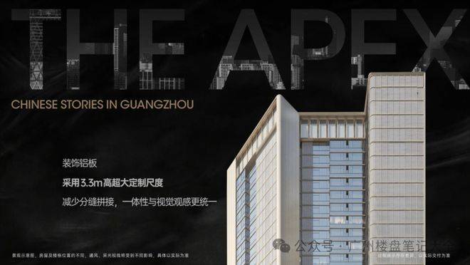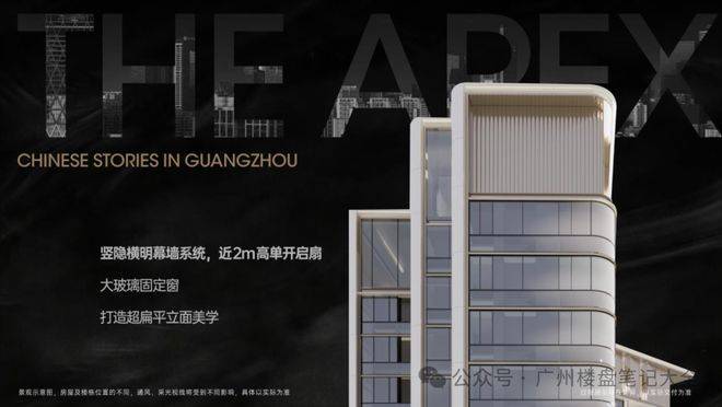 (建筑立面设计)项目采用公建化外立面设计,呼应琶洲CBD总部天际线,以玻璃窗搭配铝板幕墙打造天幕美学建筑,全装饰幕墙包裹形成5个立面450°无死角视觉效果,实现“0涂感”材料美学。约2m开扇窗保证通风采光,约2.5m宽超大阳台玻璃拓展景观视野,整体打造“云帆”造型立面,通透大气且极具辨识度,成为琶洲天际线上的标志性建筑。