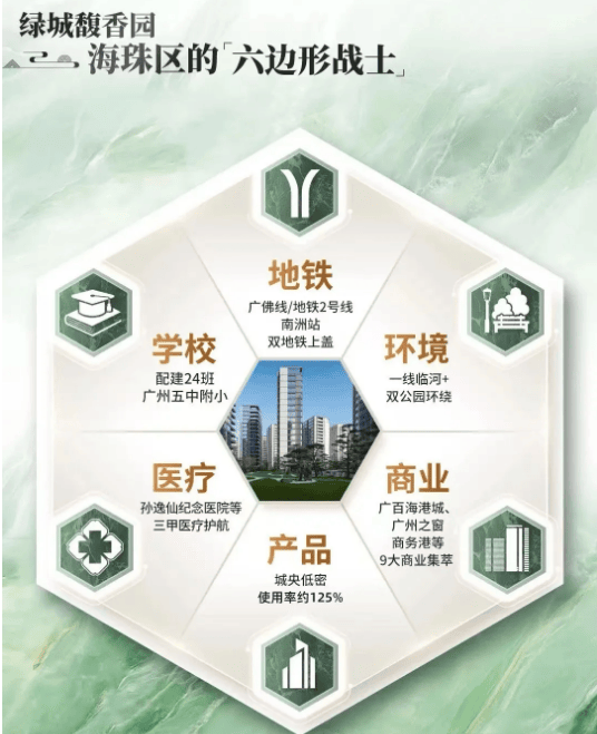 尊敬的未来业主:您好!当城市的繁华与自然的静谧在此相遇,当岭南的人文底蕴与海派的精致美学相互交融,绿城馥香园便有了与您共生共栖的初心。三十载绿城,始终以“作品与城市同行”为理念,从杭州申花的“申花之眼”到宁波东部新城的立体山水庭院,每一座馥香园都成为城市人居的标杆。如今,我们将第四座馥香园落子海珠湾心,只为给懂生活、追品质的您,献上一席藏纳繁华与诗意的理想居所。