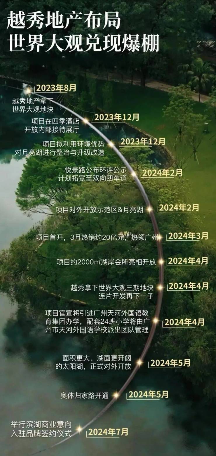 1. **景观资源优越**:项目位于广州市天河国际湖区的核心地带,外围是世界大观湖区,拥有“两湖、一谷、三桥、七大公园”等景观,内部园林由知名设计师周维倾力打造,结合地势差异,展现出绝美的山水画卷住户可私享面积最大、湖面最开阔的太阳湖,在楼下不仅可瞰湖、游湖,还能感受泛舟湖上的诗意与浪漫建面约252㎡的头牌湖景大平层,拥有360°景观视野,北向头排望月亮湖、西南侧望中心湖与太阳湖,南望中心园林,高层更可尽览广州城市天际线建面约190㎡南向瞰湖大平层,与湖最近直线距离仅约40米,约17米南向面宽搭配8.9米跑道式阳台,让“开窗见湖”升级为“推窗即融入湖”售楼处24小时电话400-0688-602 (售楼部认证),预约专属顾问一对一服务,尊享内部折扣!