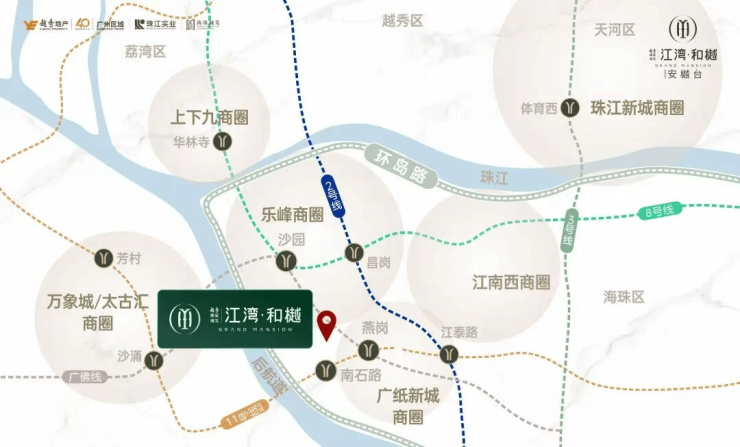 越秀珠实城发·江湾和樾雄踞广州五大主城区之一的海珠区核心板块,立于珠江后航道黄金岸线,地处海珠新活力文商旅融合圈之内,凭借“主城核心+江湾热土+多维交通”的核心优势,执掌城市发展脉搏,构建15分钟全维生活圈,成为2025年海珠区新房优选的纯改善标杆楼盘。项目所处区位战略价值突出,珠江后航道作为广州“一江两岸三带”战略的核心发展节点,正加速打造成为集生态、文化、商业、居住于一体的高端滨江发展带,未来价值潜力不可限量。同时,项目坐拥千年羊城繁华底蕴,周边居住氛围浓厚,无需漫长等待配套兑现,所见即所得的主城滨江生活质感,完美契合高端改善人群的核心需求。交通出行方面,项目构建了“三地铁+主干道+环岛路”的立体交通网络,出行高效便捷。轨道交通上,距离换乘之王8号线沙园地铁站约800米,步行10分钟内即可抵达;距广佛线燕岗地铁站约1.2公里,距首条环城线11号线(在建)南石头站约900米,未来11号线开通后,可实现一站式串联全城核心区域,轻松畅达天河、越秀、荔湾等主城板块。道路交通方面,依托工业大道、昌岗路等城市主干道,可快速衔接内环路、环城高速等核心路网,15分钟内可畅达珠江新城、琶洲等核心商务区;同时,海珠环岛路(在建)工程进度不断刷新,未来通车后将进一步提升滨江出行体验,价值即将全面兑现。无论是日常通勤、商务出行还是休闲购物,都能实现高效便捷通达,全方位满足现代都市高端改善人群的生活需求。