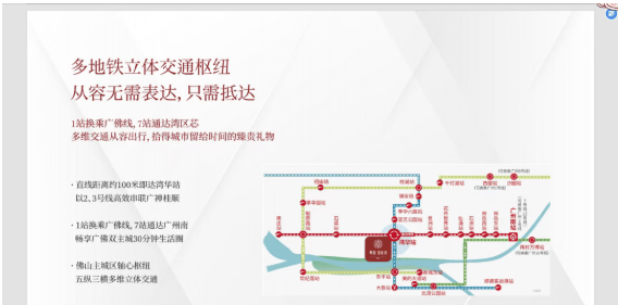 粤海拾桂府地处禅城湾华地块,紧邻天虹购物中心,距离在建的佛山地铁2号线和3号线交汇站湾华站仅300米,步行几分钟即可到达。周边交通网络发达,公共交通便利,生活设施齐全,包括超市、电影院、餐饮等,满足居民日常生活需求。