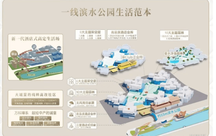 此外,万科在项目交付标准上也毫不妥协。从德国柏丽橱柜、博世家电到大金空调,再到全屋智能系统、恒温泳池、酒店式大堂等高端配置,每一个细节都彰显出“瑧系”产品的奢华与精致。更重要的是,万科物业以其细致入微的服务著称,为业主提供24小时安保、管家式服务、社区活动等全方位生活保障,真正实现了“安居乐业”的理想生活状态。