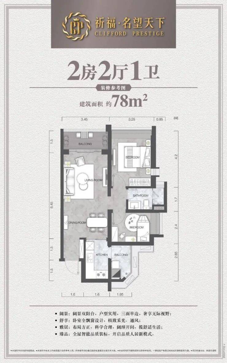 78㎡两房:紧凑实用,适合年轻夫妇或小家庭。
