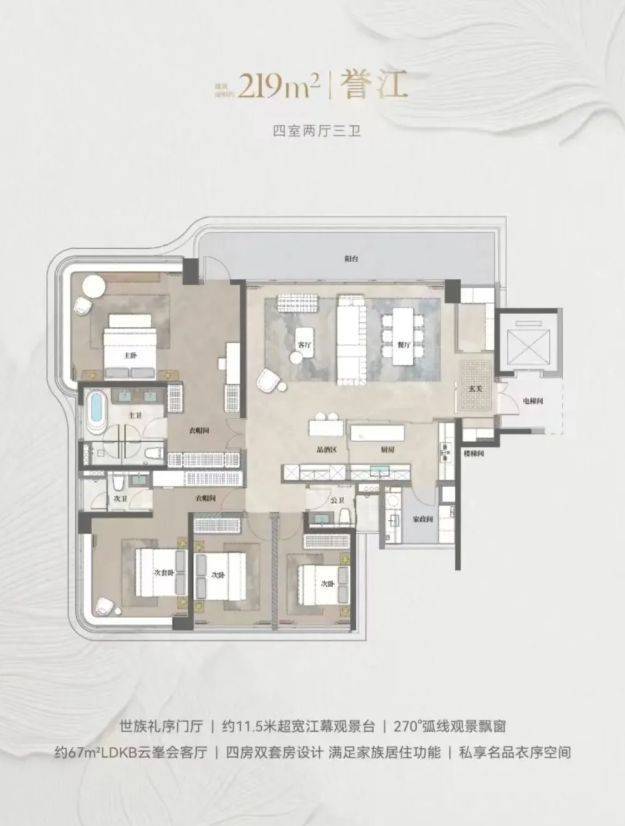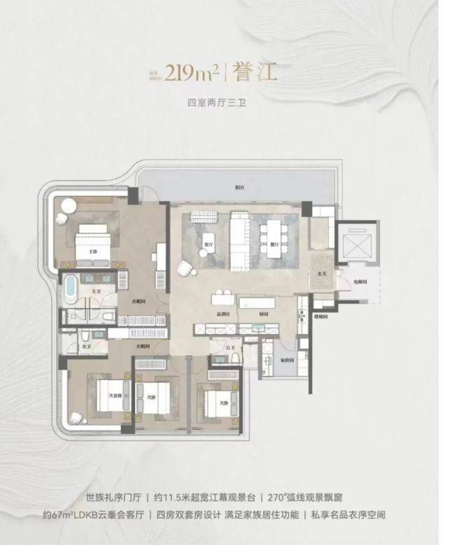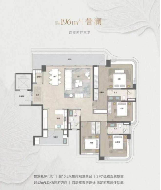 在产品设计上,该项目展现出极高的实用性与卓越的产品力。作为广州新规下南沙首个江景大平层项目,建面约 133 - 228㎡的户型使用率约 100% - 102%,有效避免了空间浪费,为业主提供了更多的实际使用空间。主卧开间可达 6.8 米,营造出宽敞舒适的休憩空间。T3 梯户比搭配私梯入户设计,不仅减少了等待电梯的时间,更保障了居住的私密性与尊崇感。LDKB 一体化方厅设计,将客厅、餐厅、厨房与阳台融合为一个开放式空间,增强了家庭成员之间的互动与交流;双套房布局满足了家庭不同成员对独立空间的需求,尤其适合多代同堂或对居住品质有较高要求的家庭,充分体现了对居住者生活需求的深度理解与关怀。