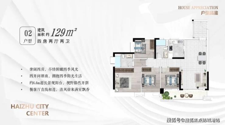 129㎡四房:双套房设计+6.6米南向观景阳台,总价545万起,匹配高端改善需求。