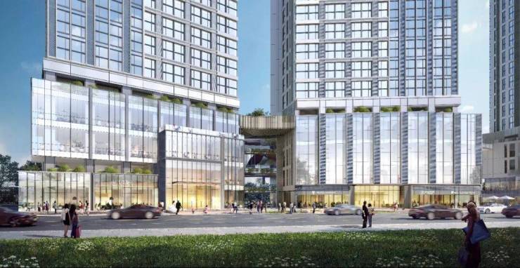 项目自建约 3 万㎡滨江商业 MALL,与酒店式商办及甲级写字楼集群共同构建后航道大型滨江商业综合体。此外,乐峰、江南西等五大成熟商圈环伺周边,举步之间尽享繁华,形成紧密相连的财富生态。