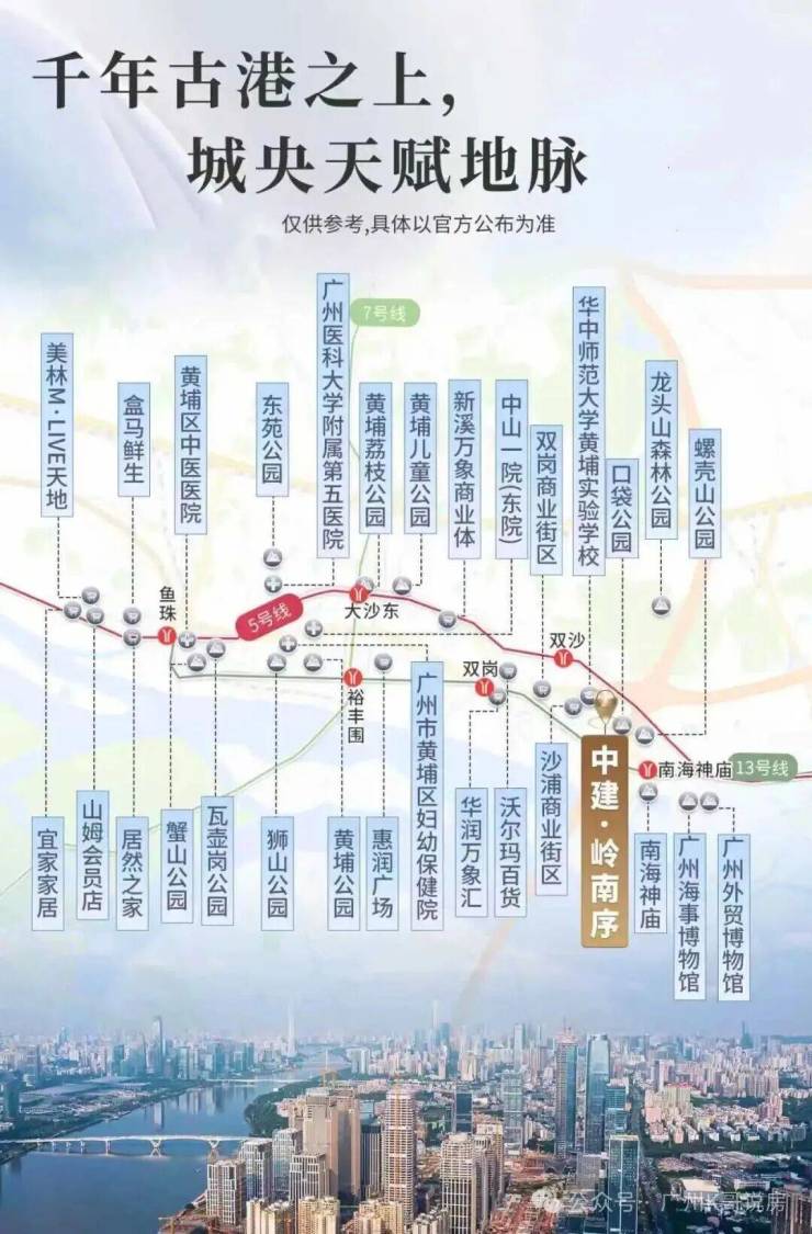中建岭南序,步行距离约800米13号线南海神庙站(一期已通车,二期即将通车),30分钟直达珠金琶CBD;