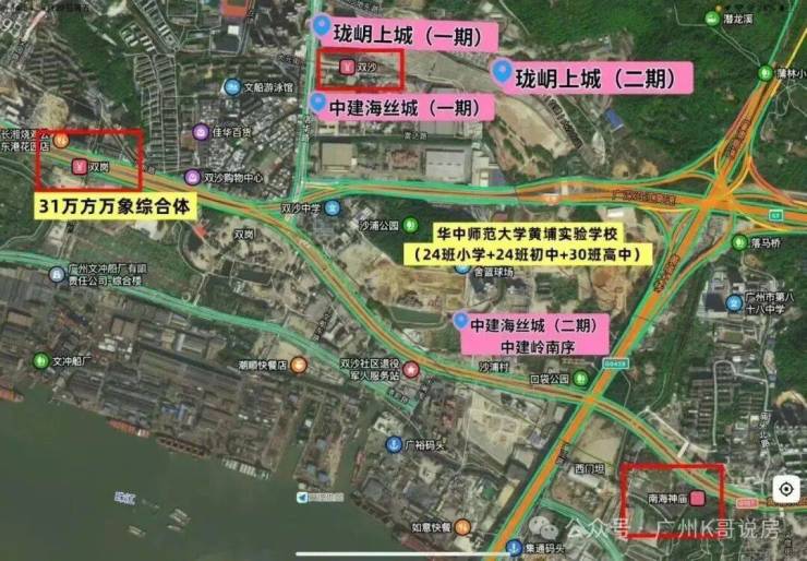 项目挨着黄埔大桥,位于华中师范大学黄埔实验学校、黄埔区中医医院以南。