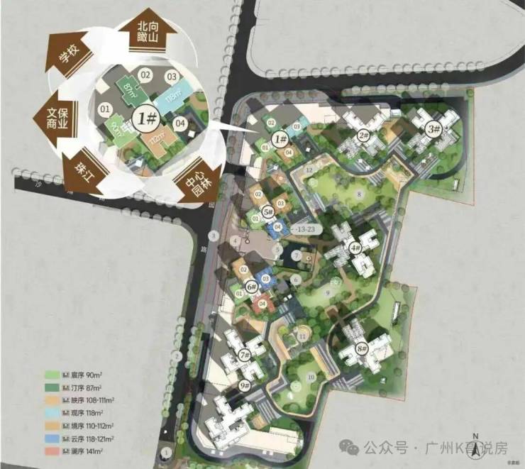 中建岭南序,共有9栋住宅。项目在售1/5/6栋(5栋46F、6栋32F)。
