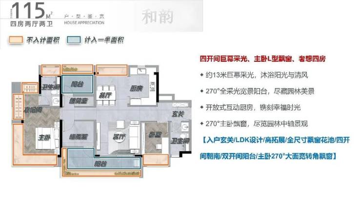 115方户型:多房朝南,厅出大阳台,空间感十足,是下班放空的绝佳场所,同时空气对流和采光效果极佳。配备800mL型飘窗,额外拓宽功能空间,收纳力拉满;设置灵活多功能空间,可自由组合,满足收纳达人的整理需求。建材配置上,厨房配备品牌橱柜、抽油烟机、燃气灶等全套厨电,卫生间采用品牌卫浴洁具,防水、防滑处理到位,保障居住安全与舒适。