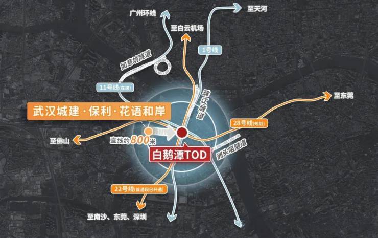 项目地理位置优越,周边交通网络四通八达,无论是公共交通还是自驾出行都十分便捷。公共交通方面,项目步行约800米可到达1号线芳村站,该站点为四线合一超级枢纽,包含已开通的1号线、11号线,以及建设中的22号线和规划中的28号线,未来可轻松链接全城。