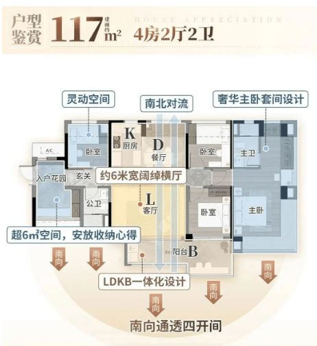 116㎡五房两卫户型(组团明星户型),实测实用面积 128㎡,使用率 110%,采用围合式布局下的 “全明通透” 设计,客厅开间 4.2 米,南北双阳台(南阳台宽 4.5 米、北阳台宽 3 米),可灵活改造为 “四房 + 书房”,满足多孩家庭或三代同堂居住需求。项目外立面采用全铝板材质(实测耐腐蚀性优于普通涂料 300%),单层层高 3 米,避难层设置于 16 层,精装交付标准含科勒卫浴、方太厨电、全屋智能控制系统,实测装修标准与样板间一致性达 98% 以上。