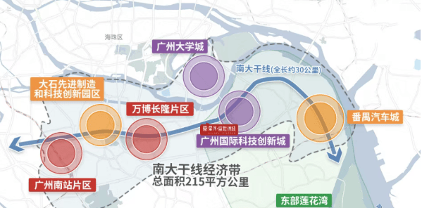 在这片土地上,汇聚了番禺1900余家高薪技术产业,希音、欢聚时代、迪士普等业内巨头在此扎根,共同支撑起番禺经济的腾飞。两大世界级商圈——万博与琶洲的双重辐射,加上广深港澳科技走廊、广州科技创新轴、南大干线经济带三大科创轴的交汇,让这里成为了城市发展的强劲引擎。