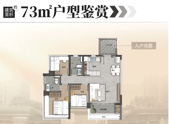 户型设计亮点突出,使用率约 130%,阳台、飘窗、花池等多处赠送空间,且所有户型阳台率达 20%,在广州市场上优势显著。户户全南向,至少四开间朝南,保证每户充足日照与通风。全系标配入户花园,可灵活改造,延展使用空间;还配备 270° 环幕飘窗与大方厅,满足家庭不同阶段需求。例如建面约 73㎡三房,虽面积不大,但实际使用尺度感强,总价不到 200 万,性价比高;建面约 87㎡五空间户型,双面宽大阳台,LDKB 超大方厅,总价不到 250 万,适合入门级改善;建面约 106㎡户型五开间朝南,格局堪比 140㎡+ 豪宅;建面约 130㎡户型做到 5 空间和双主套设计,空间利用高效。