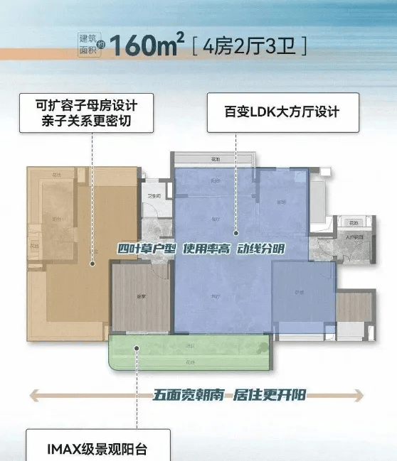 160㎡高区户型采用全套房设计,LDK 一体化布局兼顾互动与私密,是改善型客户的首选。全套房设计让每个家庭成员都能拥有独立的卫浴空间,避免了早晚使用高峰的拥挤;LDK 一体化设计则让客餐厨形成一个整体,增强了家庭互动,朋友聚会时也能轻松应对。高区楼层拥有更好的视野,部分房源能俯瞰珠江全景,彰显品质生活。