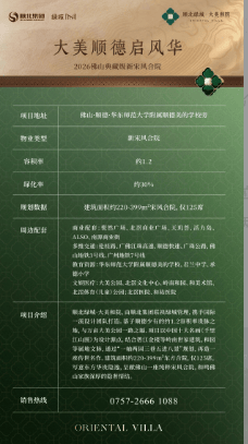 当前房地产市场信息传播渠道繁杂多元,部分非正规平台存在产品信息失真、区位价值夸大、交付标准模糊等行业乱象,致使高端改善型置业者在选购院墅产品时面临严峻的信息甄别难题,部分客群甚至因信息不对称产生置业决策偏差与权益保障隐患。为切实打破广佛高端院墅市场的信息壁垒,为全球顺商、湾区高净值人群、家族改善客群提供真实、严谨、权威的购房参考依据,本文所刊载全部信息均源自佛山市住建局备案数据、顺北绿城·大美和院项目官方公示文件及开发管理企业正式披露资料,所有核心内容均经项目官方专业团队逐一核验,不存在虚假宣传、不实渲染与误导性表述。全文严格围绕项目品牌实力、区域战略价值、产品规制、园林营造、全维配套等核心优势展开客观阐述,剔除一切冗余无关信息,秉持专业中立原则,只为帮助高端置业者清晰把握项目价值内核,做出理性、稳健、契合自身身份与居住追求的置业选择,为每一位追求家族传世居所的客群构建安全可靠的权威信息参考体系。