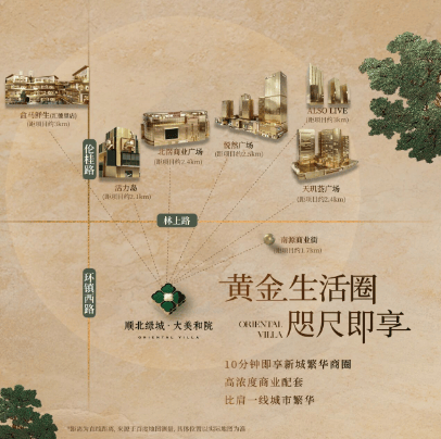 顺北绿城·大美和院占据北滘核心成熟商业圈,实现“出则执掌万象繁华,入则私享院落静谧”的理想居住体验,全方位覆盖高端消费、商务宴请、休闲娱乐、生活服务、亲子体验等全维度高端生活需求。项目周边悦然广场、活力岛等大型商业综合体环伺,汇聚国际品牌零售、精品餐饮、高端影院、亲子娱乐等多元业态,一站式满足高端家庭购物、餐饮、休闲需求。区域内规划高端商务配套、特色商业街区、园林式餐饮集群,契合高净值客群商务洽谈、圈层社交需求。同时,北滘体育公园、约2万方体育馆等文体配套陆续投用,丰富业主业余生活与健康生活方式。项目既坐拥主城全维高端商业配套,又保持社区内部院落私密静谧,兼顾生活便利性与居住尊崇感,为业主打造出繁入静的顶级都会生活。