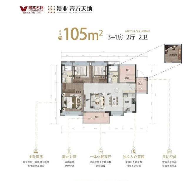 景业壹方天地主推 77 - 105㎡三至四房户型,设计多样且实用。79㎡三房两厅一卫,南北设计保证通风采光,独立入户花园增加空间层次感与私密性,全明布局让室内空间明亮通透。89㎡三房两厅两卫为 N + 1 灵动户型,拓展空间利用率,满足家庭不同阶段需求变化。94㎡三房两厅两卫的 2 + 1 房设计,合理规划空间,适合多成员家庭居住。105㎡四房两厅两卫的 3 + 1 房配置,主卧套房设计,保障主人生活私密性与舒适度,采光充足,为家庭营造宽敞舒适的居住环境。多样的户型选择与实用的空间设计,满足了不同家庭结构和生活需求的购房者。