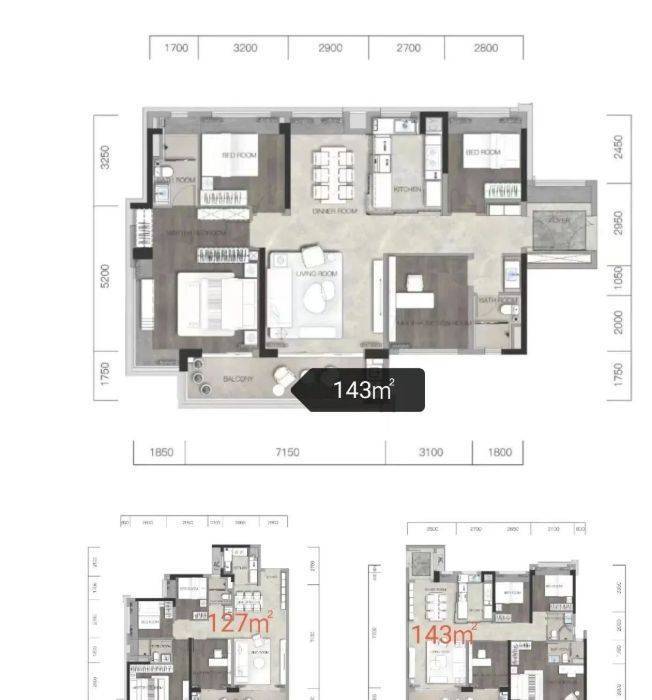 139㎡的四房两厅两卫户型,空间尺度更为宽敞,能充分满足家庭对居住空间的需求。四房设计可满足三代同堂或二孩家庭的居住需求,每个家庭成员都能拥有独立舒适的空间。